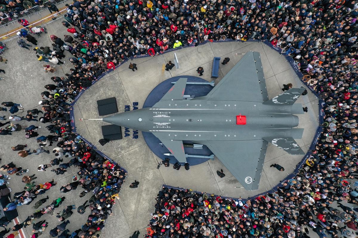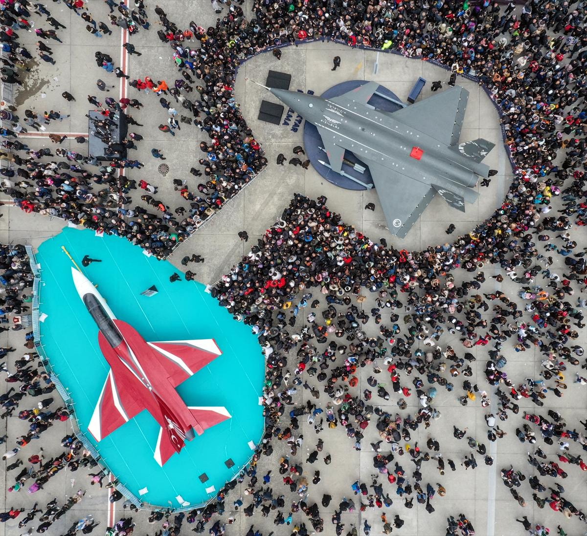 Keşif-gözetleme ve istihbarat görevlerinin yanı sıra kanatları altında taşıdığı yerli akıllı mühimmatlarla operasyon icra etme kabiliyetine sahip Bayraktar TB3'ü inceleyen her yaştan vatandaş fotoğraf çektirdi.