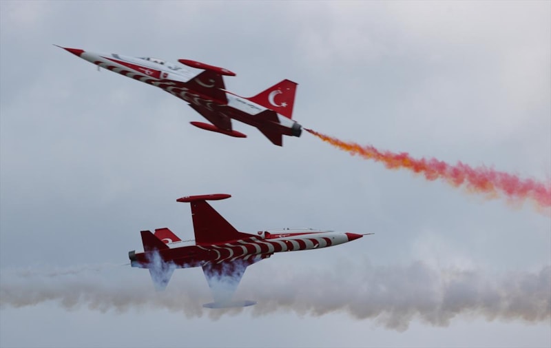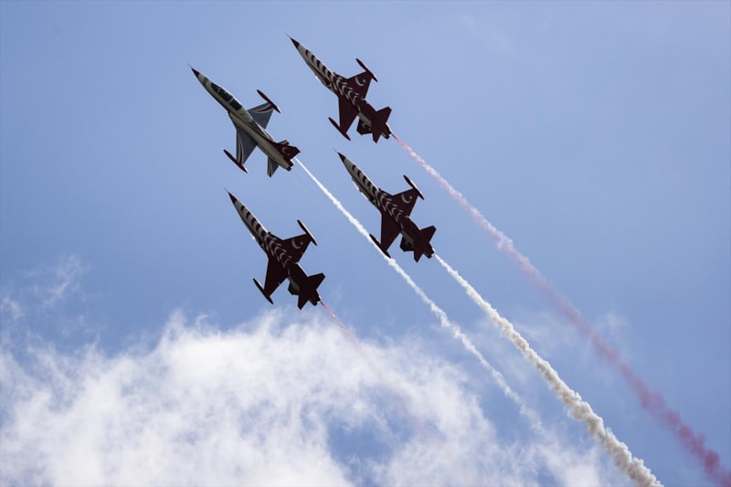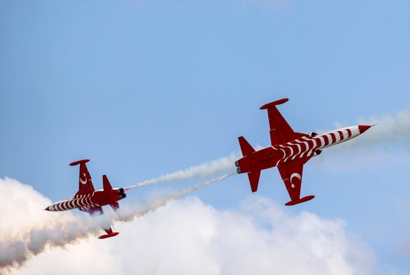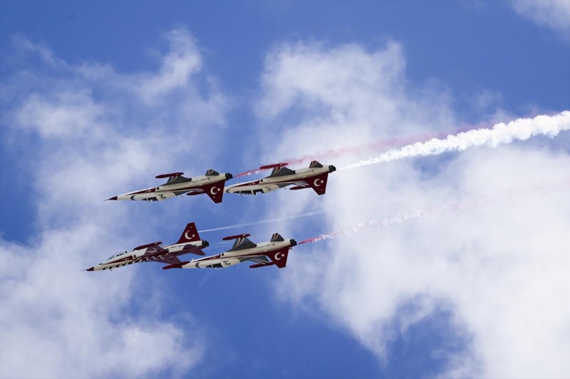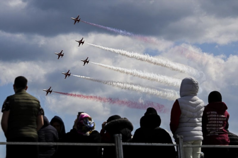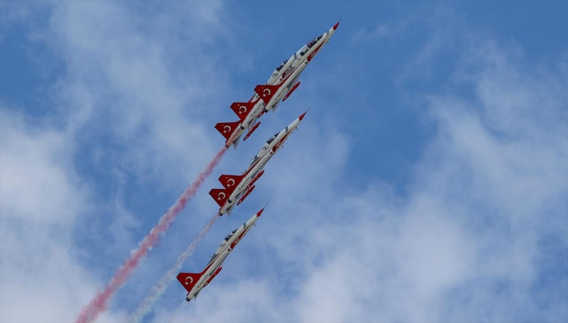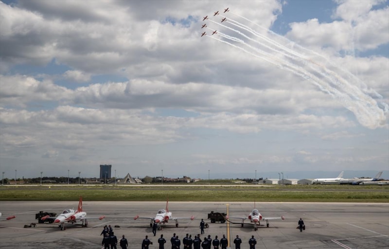 Hava Kuvvetleri Komutanlığı akrobasi timi "Türk Yıldızları" da gösteri uçuşu gerçekleştirdi.