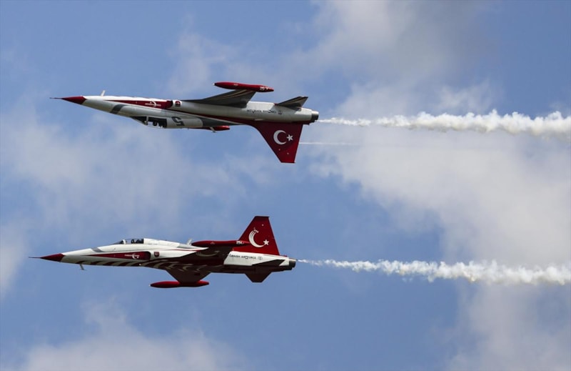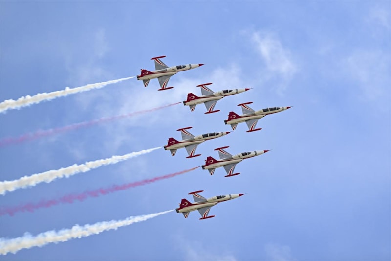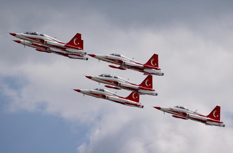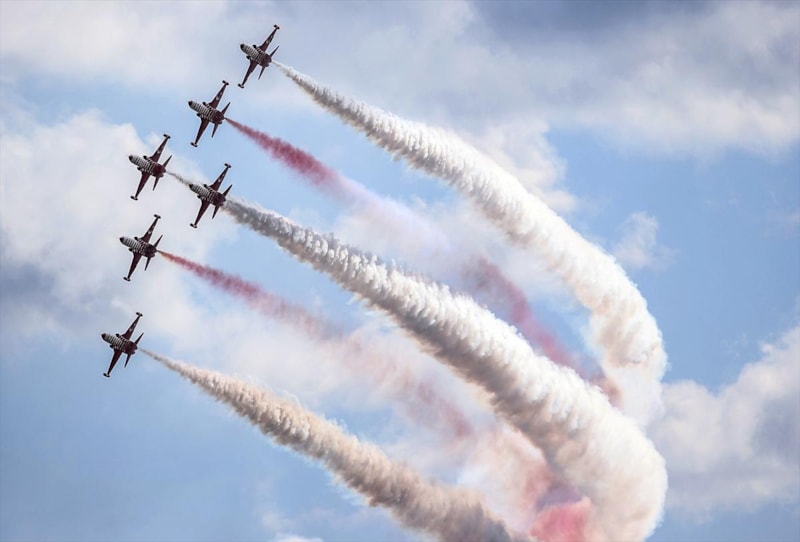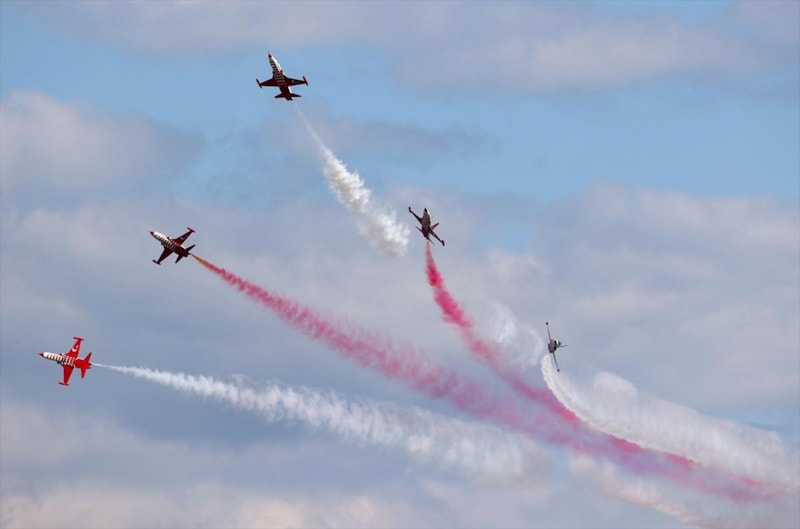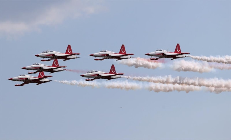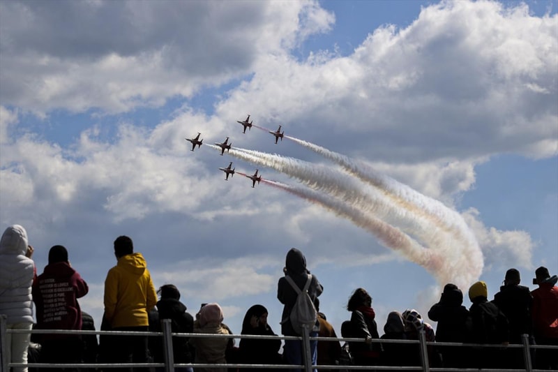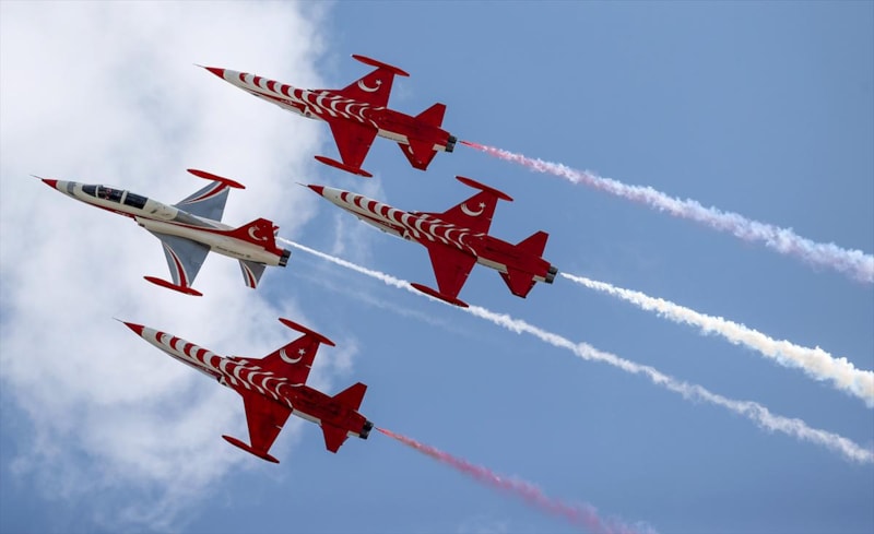 Hava Kuvvetleri Komutanlığı akrobasi timi "Türk Yıldızları" da gösteri uçuşu gerçekleştirdi.