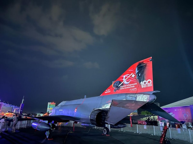 İnsansız hava aracının kuyruğu Mustafa Kemal Atatürk'ün ve Türk bayrağı posteriyle kaplandı.