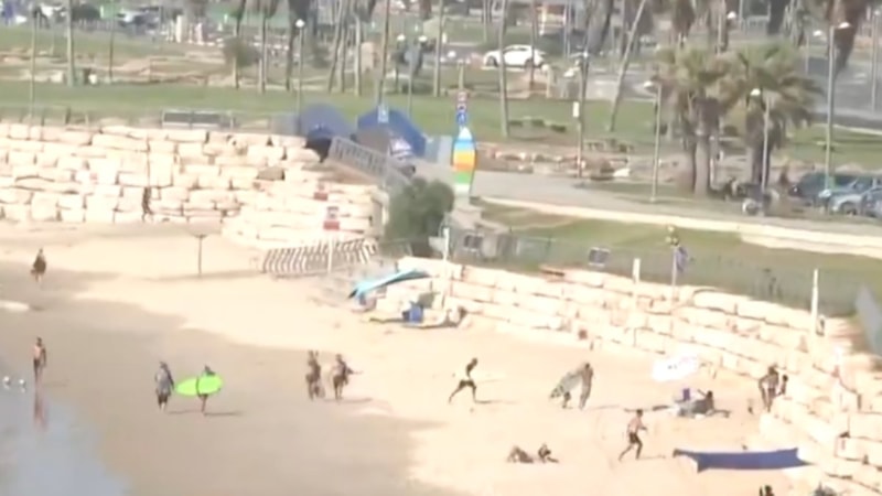Sahil kesiminde yürüyen sivillerin bölgeyi koşarak boşalttığı ekranlara yansıdı.