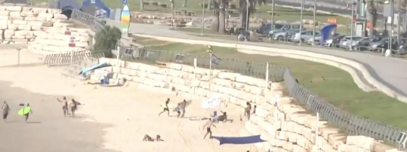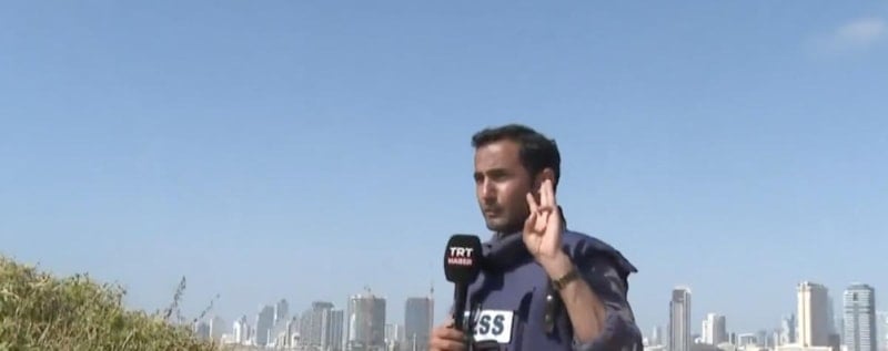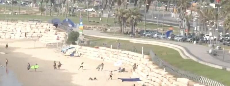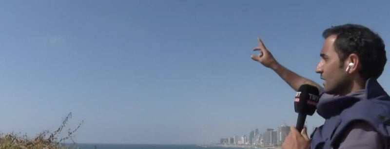 Olayları anlatın TRT muhabirinin, "Normalde burada iğne atsanız yere düşmez ama şu anda bomboş kaldı. Gökyüzüne bakıyorum. İsrail demir kubbe hava savunma sistemi tarafından iki füze patlatıldı. İsrailliler sahili boşaltıp, kaçtılar. Şu anda bir füze daha patlatıldı. Patlama sesleri geliyor. Birbirine yakın bölgede patlatılan füze-İHA sayısı üçe çıktı. En az 3 saldırı ihası Tel Aviv'e ulaştı.