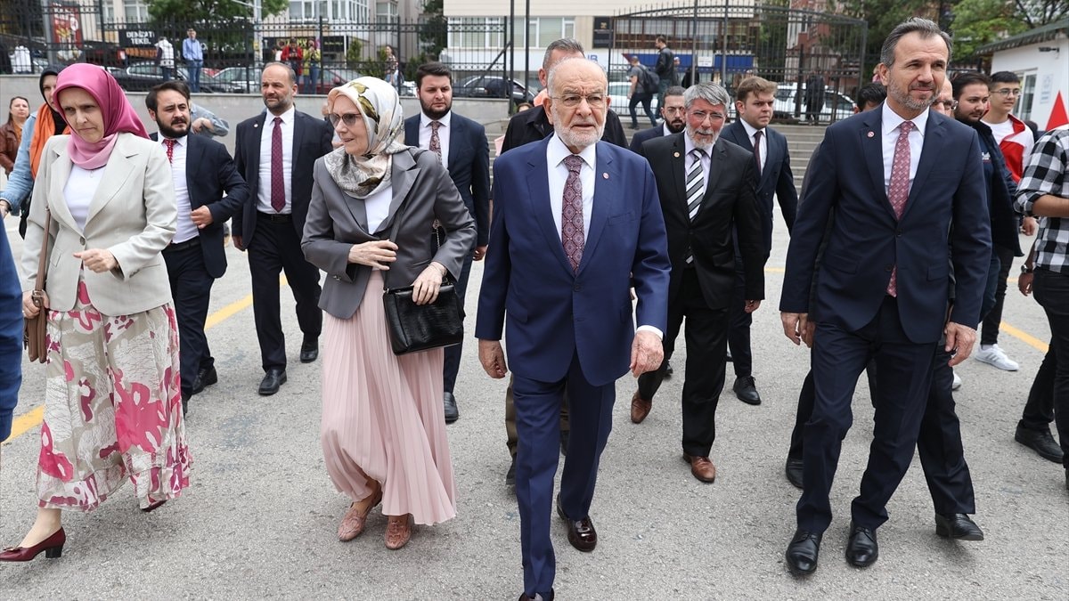 Saadet Partisi Genel Başkanı Temel Karamollaoğlu, eşi Ayşe Yasemin Karamollaoğlu ile birlikte Ankara Çankaya Lisesi'nde oyunu kullandı.