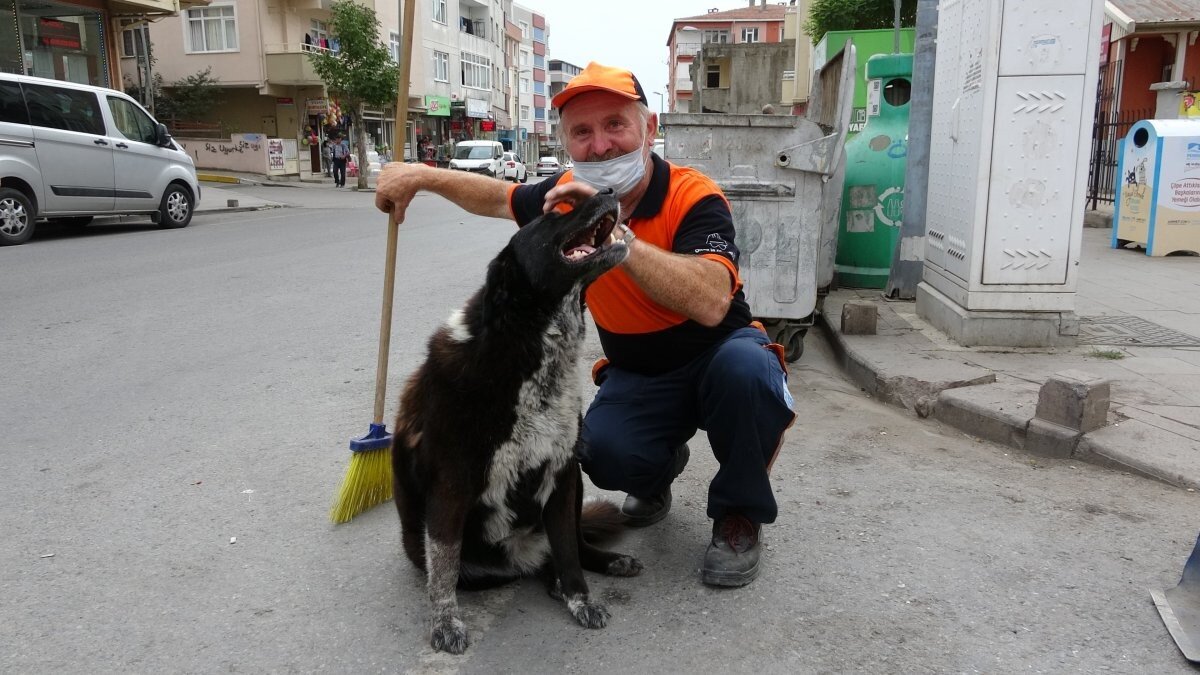 Pendik Belediyesi Temizlik İşleri Müdürlüğü bünyesinde görevli bir temizlik işçisi, sokak köpeğine elindeki süpürge ile masaj yaptı. Yürekleri ısıtan o anlar, bir vatandaş tarafından cep telefonu kamerası ile kaydedildi.