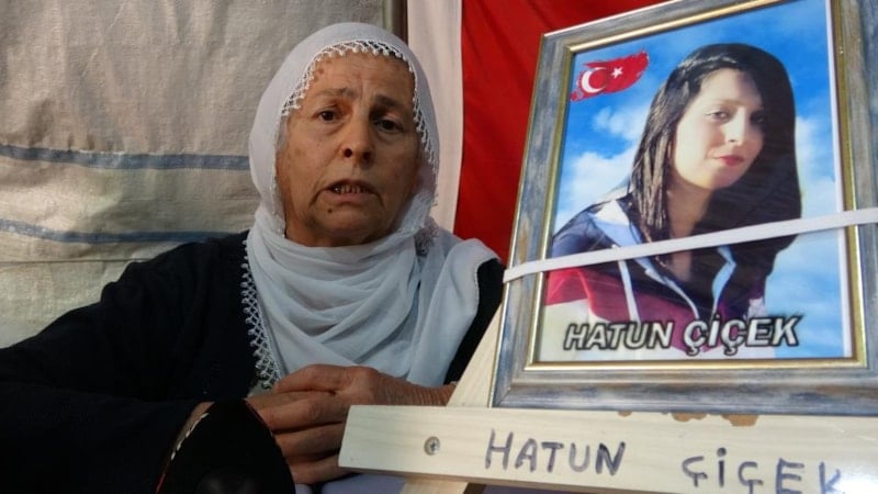 Kızı Hatun Çiçek'in 9 yıl önce 23 yaşındayken dağa kaçırıldığını ileri sürerek oturma eylemine katılan Nihan Çiçek, kızının hasretiyle yandığını söyledi.