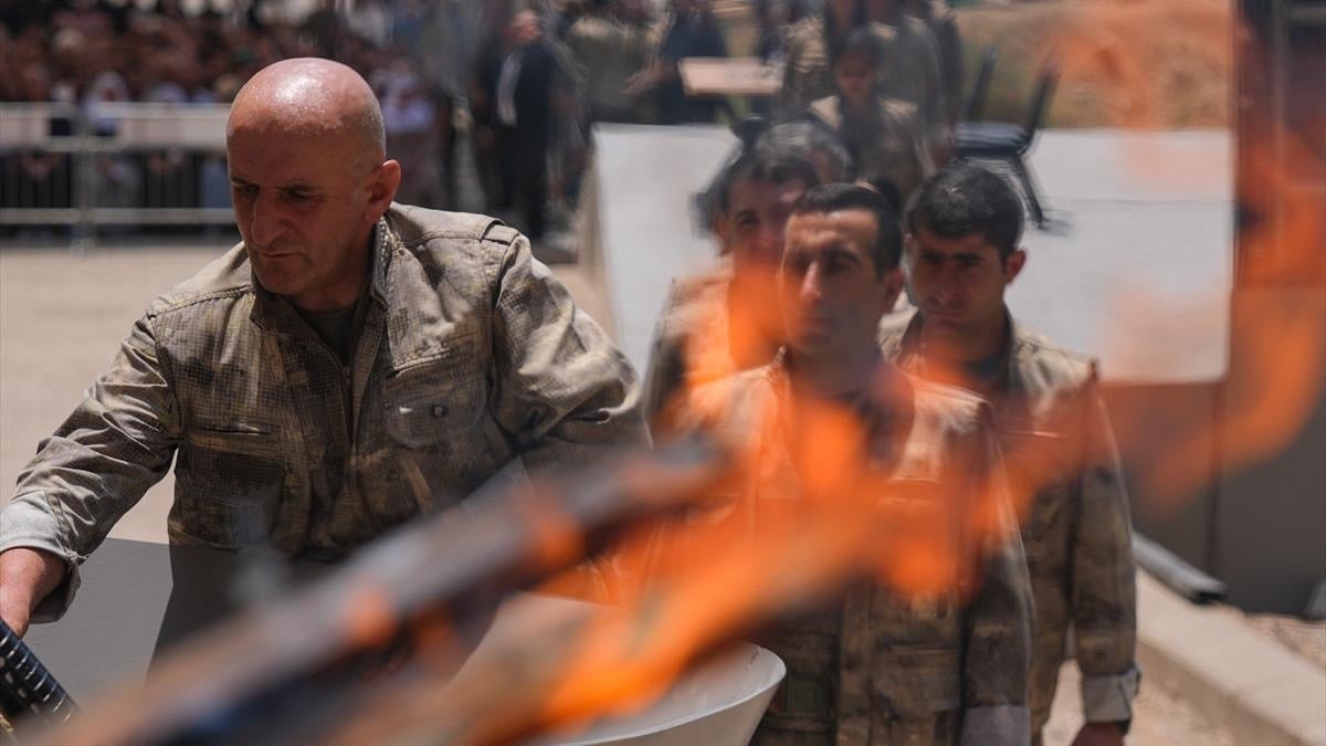 Öcalan’ın çağrısı doğrultusunda örgüt, 11 Temmuz 2025’te Irak Kürt Bölgesel Yönetimi sınırları içindeki Süleymaniye kırsalında bir “silah bırakma töreni” düzenledi.