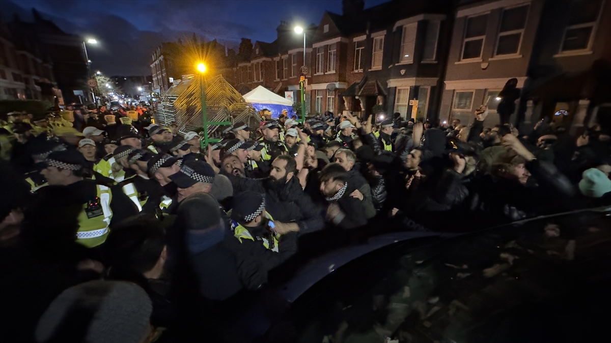 Haringey'deki toplum merkezi önünde bir araya gelen örgüt destekçileri ile bu noktada barikat kurmak isteyen polis arasında arbede çıktı.