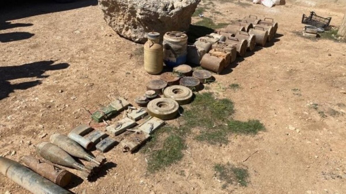 “Suriye’nin Barış Pınarı Bölgesi’nde yer alan Telabyad ilçesinde Yerel Kolluk Birimleri ile MİT Başkanlığı ve Suriye Milli Ordusu (SMO) unsurlarının, PKK/KCK-PYD/YPG terör örgütünün faaliyetlerinin tespiti ve deşifre edilmesine yönelik alınan istihbari bilgiler doğrultusunda, 30.03.2021 günü eşgüdüm içinde yürüttükleri arama tarama faaliyetleri neticesinde, 2 adet top mühimmatı kullanılarak hazırlanmış yaklaşık 35 kilogram ağırlığında el yapımı patlayıcı, 2 adet havan mühimmatı kullanılarak hazırlanmış yaklaşık 26 kilogram ağırlığında el yapımı patlayıcı, 1 adet yönlendirme şeklinde yaklaşık 5 kilogram ağırlığında el yapımı patlayıcı, 9 adet fabrikasyon tipi yaklaşık 27 kilogram ağırlığında anti personel mayını, 2 adet tapaları ile birlikte yaklaşık 20 kilogram ağırlığında anti tank mayını, 8 adet demir bloklarla hazırlanmış patlamaya hazır yaklaşık 40 kilogram ağırlığında el yapımı mayın, 2 adet plastik bidon içerisine tuzaklama yapılarak hazırlanmış yaklaşık 100 kilogram ağırlığında el yapımı patlayıcı, 16 adet demir bloklar içerisine tuzaklanmış yaklaşık 440 kilogram el yapımı patlayıcı olmak üzere toplam 42 parçadan oluşan yaklaşık 693 kilogram ağırlığında patlayıcı madde ele geçirilmiştir.