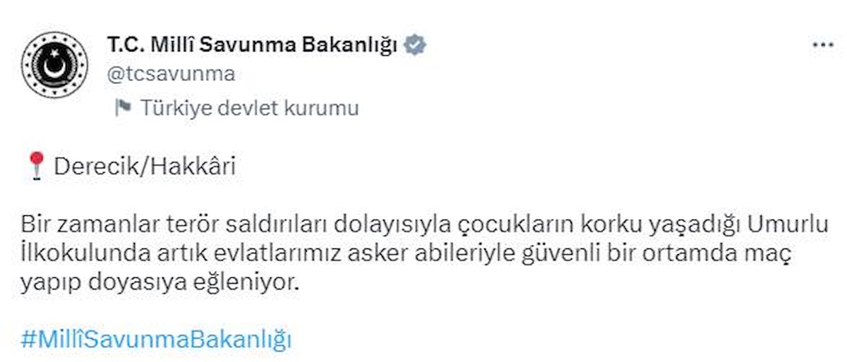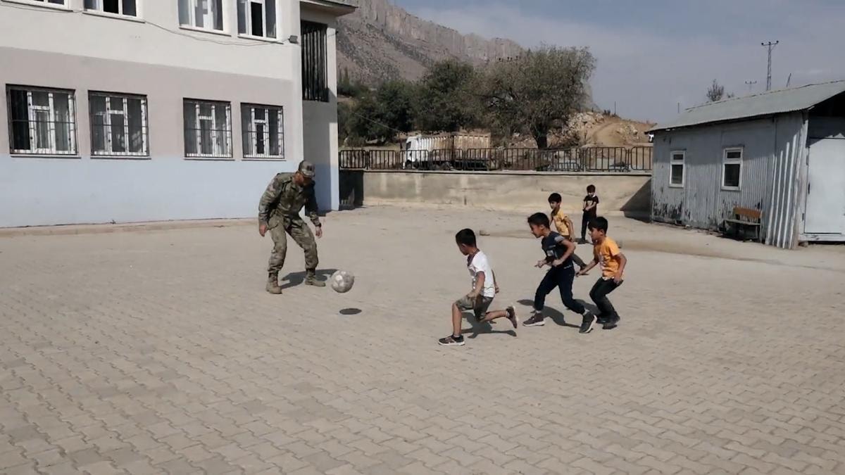 Bir zamanlar terör saldırıları dolayısıyla çocukların korku yaşadığı Umurlu İlkokulunda artık evlatlarımız asker abileriyle güvenli bir ortamda maç yapıp doyasıya eğleniyor.