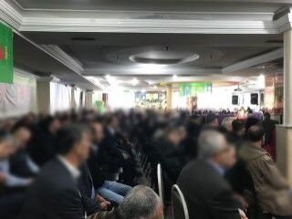 Afrin'de öldürülen teröristler için anma töreni düzenleyen örgüt yandaşları, salona teröristbaşı Abdullah Öcalan ve diğer teröristlerin fotoğraflarını da astı.