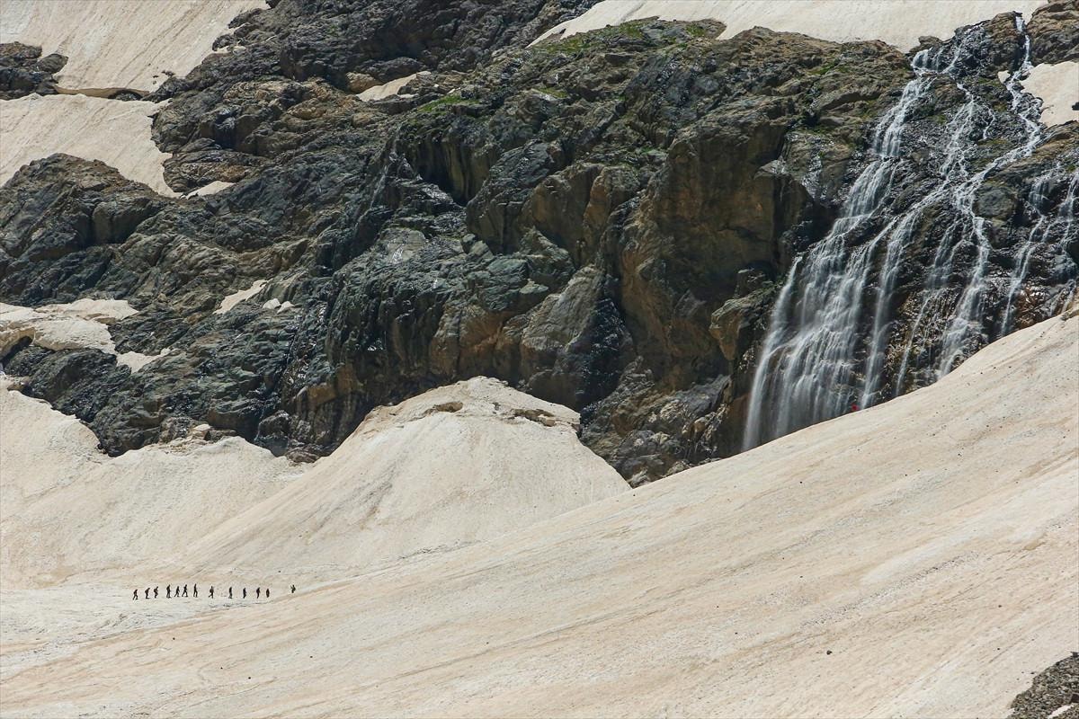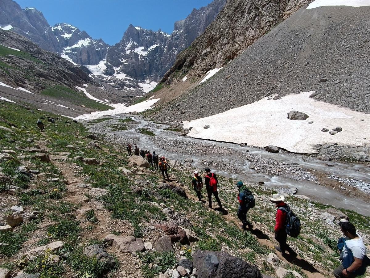 Van Vadi Doğa Sporları Kulübü Derneği üyelerinden oluşan 48 kişilik grup da buzulların bulunduğu dağların eteklerindeki vadide doğa yürüyüşü gerçekleştirdi.