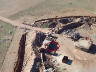 Drone kamerasına yansıyan görüntülerde, bölgeye hakim yüksek bir alandaki mevzide, üzeri toprak damlı birkaç bina görülüyor. Hareket halindeki en az 5 terörist, drone ile kaydedildiklerini fark edince panikleyerek barakalara girmeye başladı. İçlerinden biri motosiklete binerek hızla uzaklaşırken, içeriden çıkan iki terörist drone'u hedef aldı.