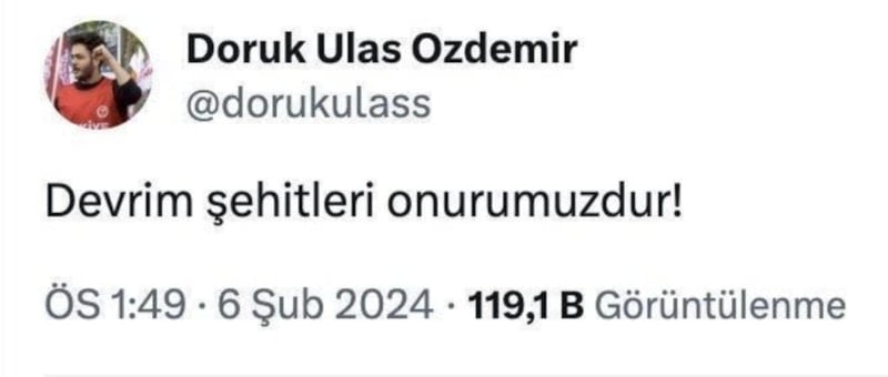 Paylaşımın ardından harekete geçen emniyet güçleri TİP'li Doruk Ulaş Özdemir'i gözaltına alındı.