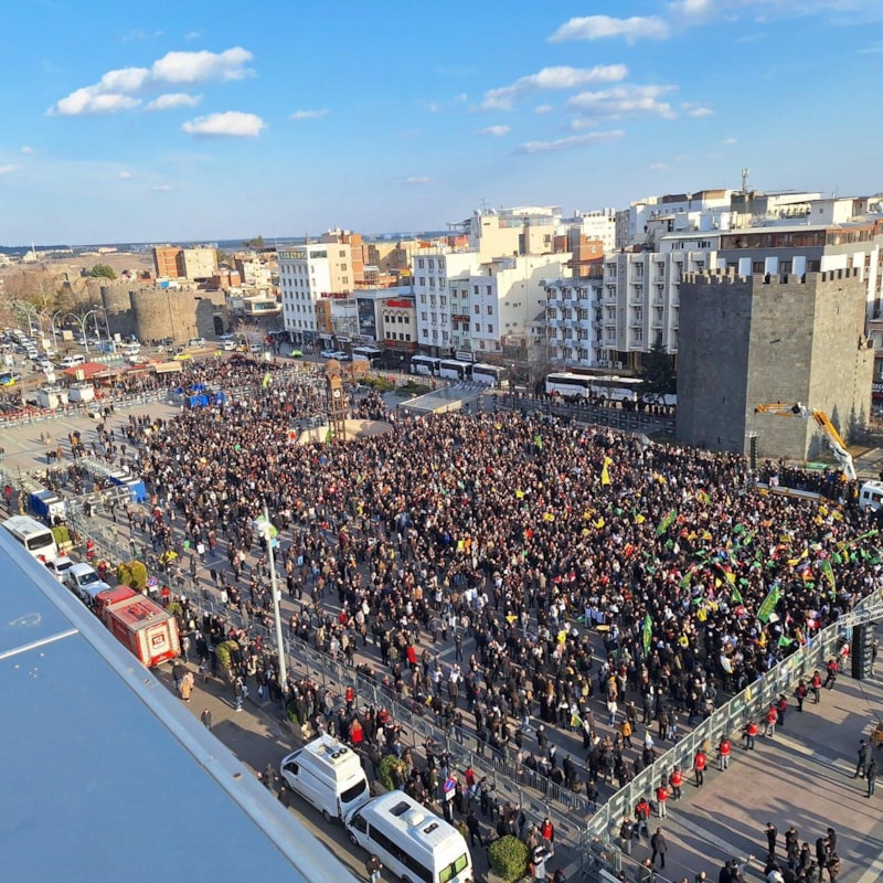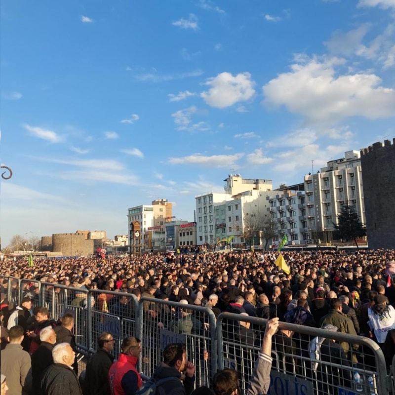 DEM Parti heyetinin 3'üncü İmralı ziyareti sonrası Öcalan'ın çağrısı açıklanırken, diğer yandan Diyarbakır ve Van'da, bu tarihi çağrının canlı takip edilmesi için dev ekranlar hazırlandı. Bu illerde halk, meydanları doldurdu.