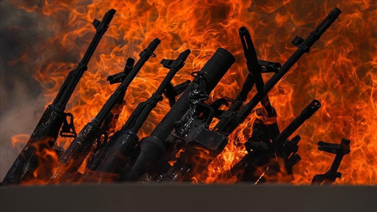 Etkinlikte örgüt mensupları sembolik olarak silahlarını yaktı.