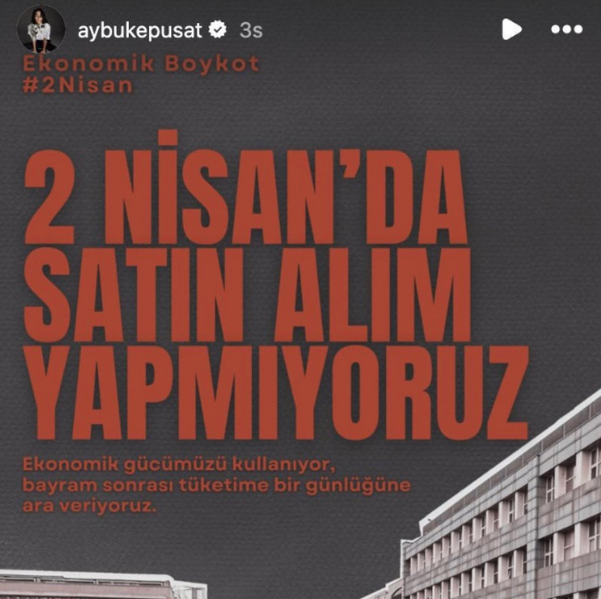 Bölüm başına 500 bin, aylık ise 2 milyon lira diziden ücret alan Aybüke Pusat, çalıştığı kuruma ihanet ederek Özgür Özel'in çağrısıyla sosyal medya hesabından boykot paylaşımı yaptı.