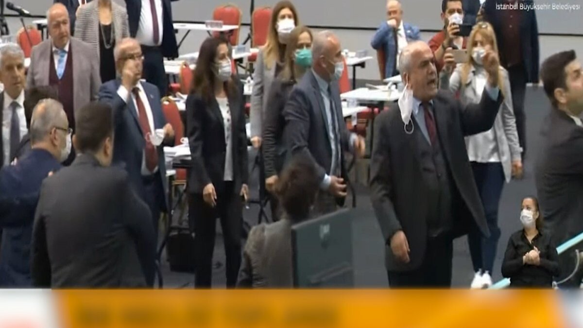 CHP'li belediye meclis üyeleri de Tevfik Göksu'nun bu sözleri üzerine kürsüye yürüdü.