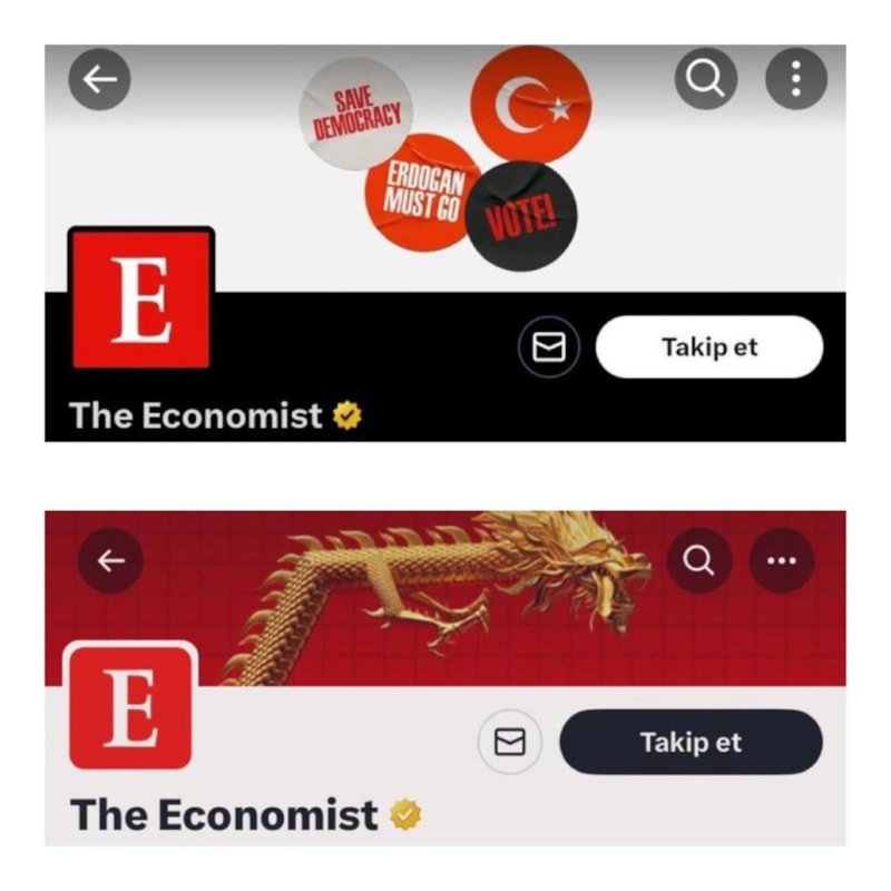Yurt dışı sandıklarının açıklanmasının ardından Cumhurbaşkanı Erdoğan'ın Kılıçdaroğlu'na fark attığını gören The Economist, Twitter kapak fotoğrafını kaldırdı.