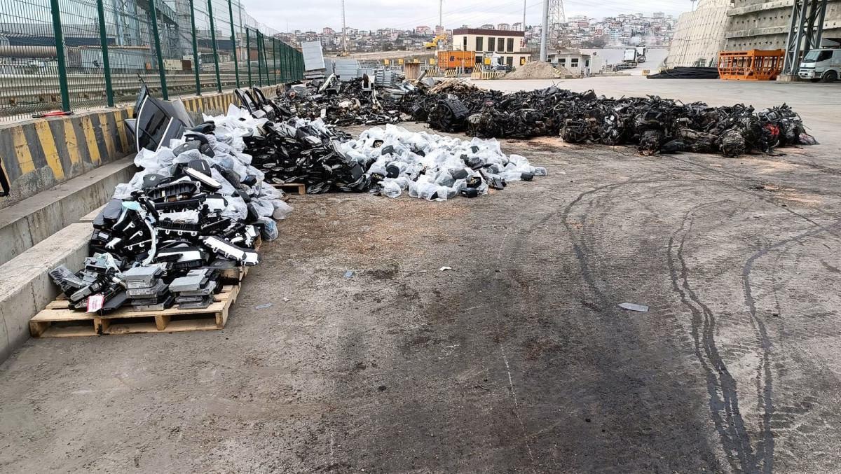 Şüpheli yoğunluklar gözlemlenmesi üzerine fiziki arama işlemi gerçekleştirildi. Naylon poşetlere konulmuş, çeşitli markalara ait hava yastığı, ekran, far, gösterge paneli, beyin olmak üzere toplamda, 4 bin 203 otomotiv yedek parçası ele geçirildi.