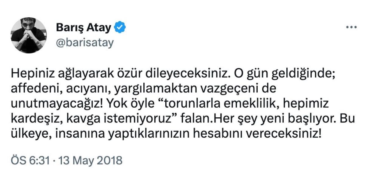 Daha önceki 'yargılayacağız' tehditleriyle gündeme gelen isimlerden biri olan TİP'li Barış Atay, bu seçimde umduğunu bulamadı.