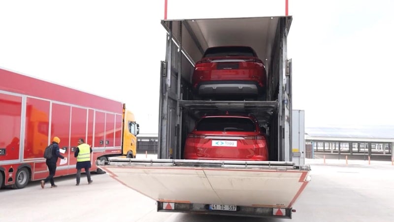 Görüntülerde, ilk Togg'ların Gemlik Fabrikası'ndan çıkışı, nakliyesi ve Cumhurbaşkanlığı Külliyesi'ne getiriliş anları yer alıyor..