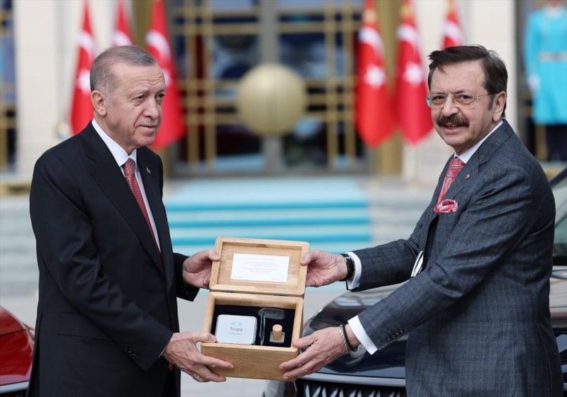Türkiye'nin otomobili Togg'un ilk teslimatı Cumhurbaşkanı Recep Tayyip Erdoğan ile eşi Emine Erdoğan'a yapıldı. Togg, teslimatın görüntülerini "Heyecana 1800'ü aşkın Togg'lunun alın teri ve emeği eşlik ediyor" notuyla paylaştı.