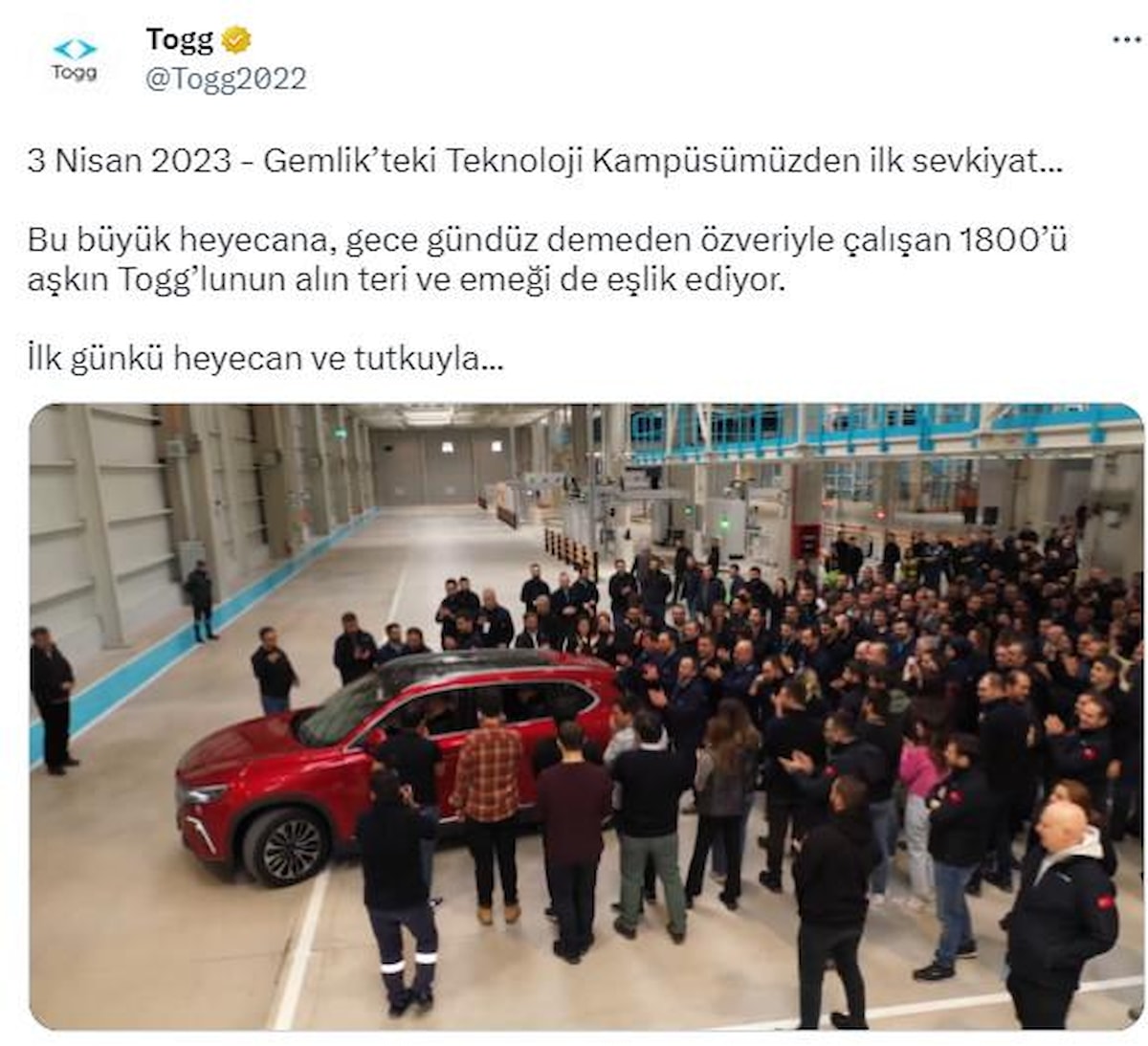 Togg, paylaşımında şu ifadelere yer verdi: