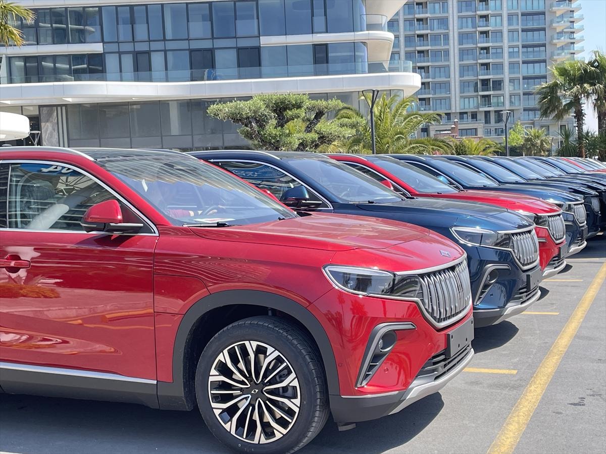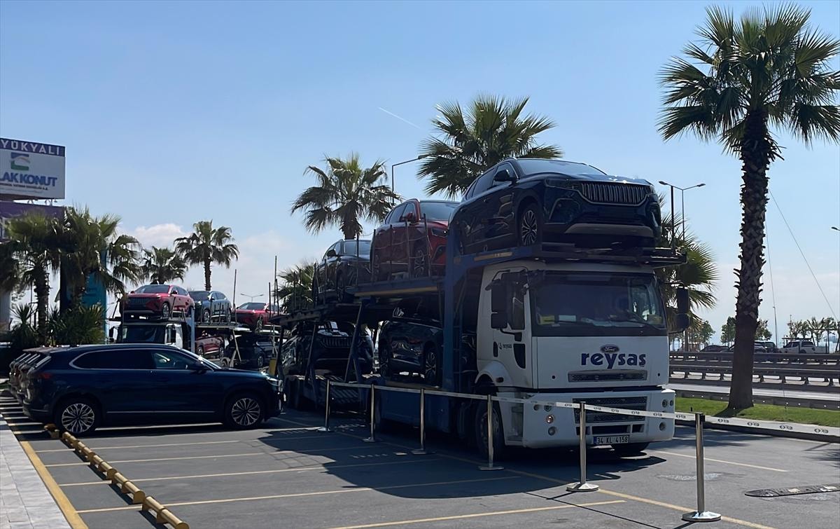 Tırlardan indirilen araçlar, Togg Deneyim Merkezi önündeki otoparka indirildi. Araçların, randevu sistemiyle sahiplerine teslim edileceği öğrenildi.