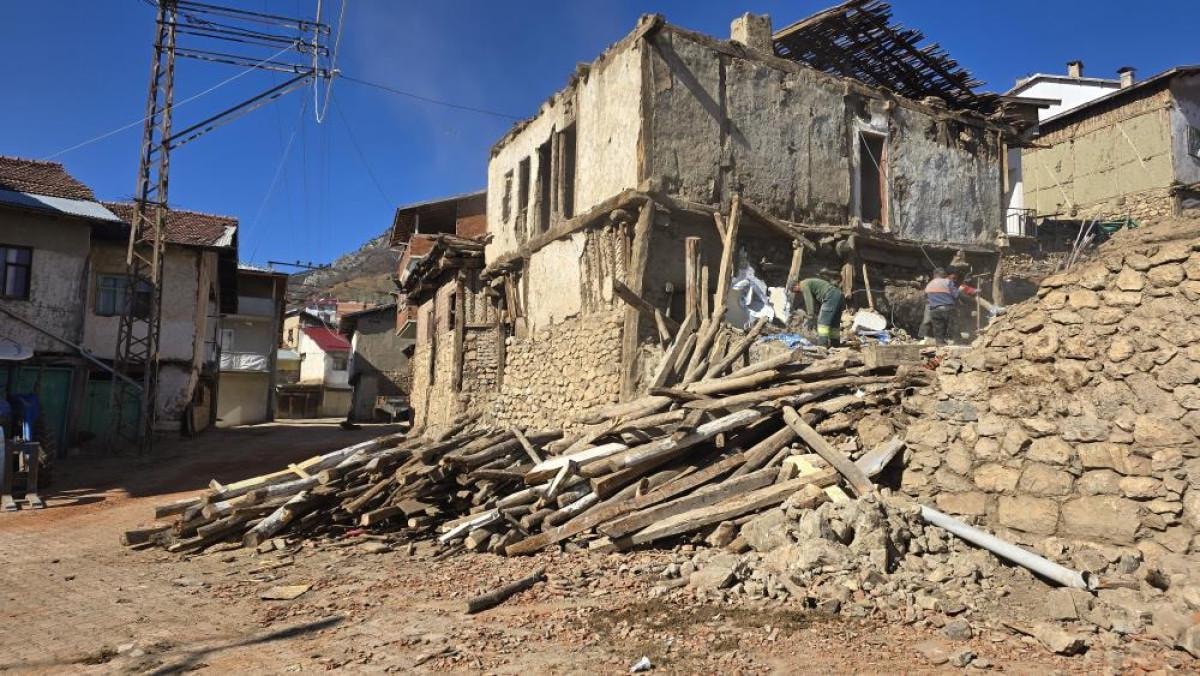 Boşaltılan evin yıkım işlemleri devam ediyor. Ailenin isteği üzerine yıkılan yerin yerine yenisi yapılacak.