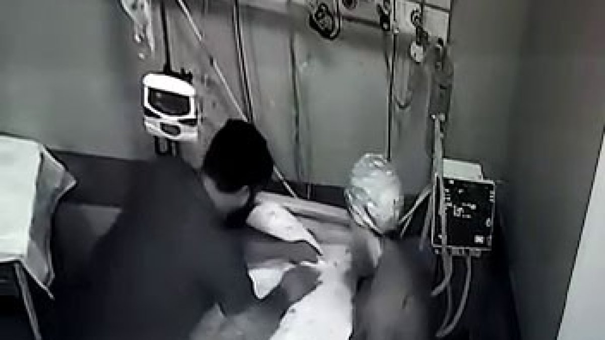 Görüntülerde, biri kadın biri erkek iki yoğun bakım hemşiresinin cihazlara bağlı olarak bilinçsizce yatmakta olan erkek hastanın çarşafla yüzünü kapatıp elleriyle ağzını ve boğazını sıktıkları, parmaklarıyla gözüne baskı uyguladıkları görüldü.