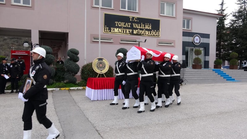 Tokat Devlet Hastanesinde yapılan otopsi işlemlerinin ardından Yalçındağ’ın cenazesi Tokat İl Emniyet Müdürlüğüne getirildi.