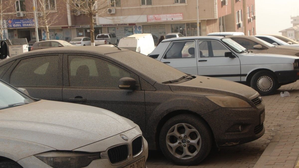 Bazı noktalarda görüş mesafesi düşerken, bölge genelinde evlerin balkonları ve araçlar tozla kaplandı.
