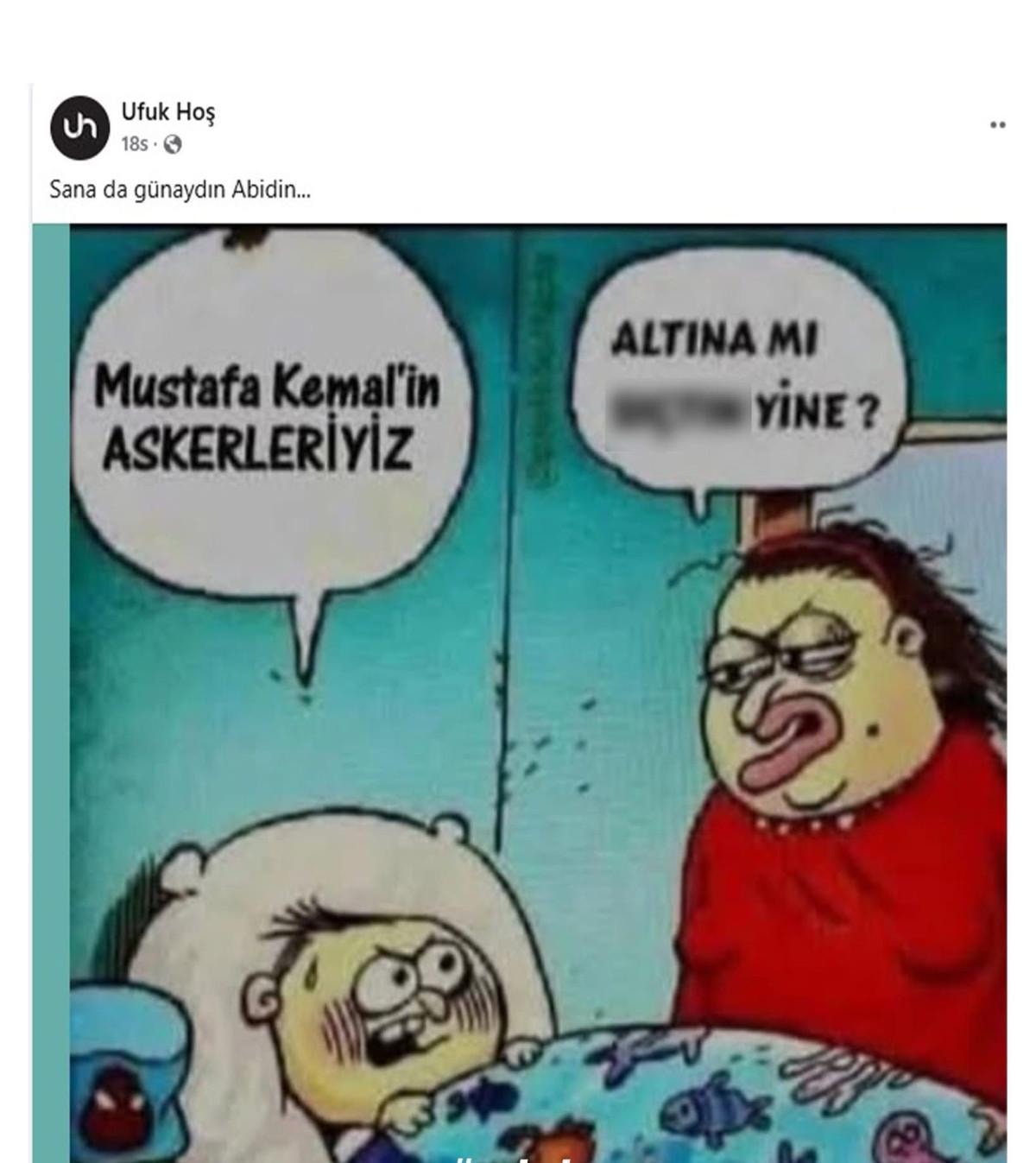 Paylaşımı okuyan Çebi "Atatürk'e hakaret edemezsin" ifadelerini kullandı.