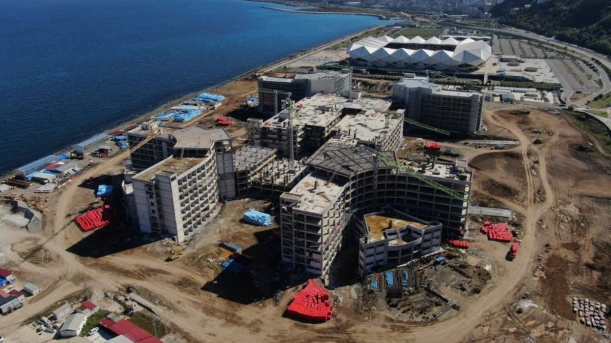 Yapımı devam eden Şehir Hastanesi ile ilgili bilgiler veren Trabzon İl Sağlık Müdürü Dr. Hakan Usta, “Öncelikle 900 yataklı bir hastane yapılıyordu. Bunu yaklaşık 250'si yoğun bakım yatağı olarak şekillenmişti. Geri kalan yaklaşık 650 yatakta tek kişilik odalar şeklinde planlanmıştı. Aynı planda doğrultusunda gidiyor. Ve bu odalarımız gerektiğinde çift kişilik kullanabileceğimiz şekilde planlamıştık. O nedenle de bin 461 yatağa kadar ifadesini kullanabilmiştik. Şimdiki öngörümüz yaklaşık bin 300 yatağa kadar hesap edebilir durumdayız ve ona göre planlamalarımızı yapıyoruz. Hem içerisine koyacağımız tıbbi cihazlar hem personel anlamında bin 300'e kadar şekilde planlama yapıyoruz. Dört tane kulemiz vardı. KVC ve Onkoloji kuleleri, genel hastane ve kadın doğum kuleleri de yapım imalatları da devam ediyor. İnşallah bittiğinde de bölgemize hem sağlık turizmi açısından hem halkımızın sağlığı açısından ciddi bir yapısal sorunu ve teknik sorunları ortadan kaldırmış olacağız.” dedi.
