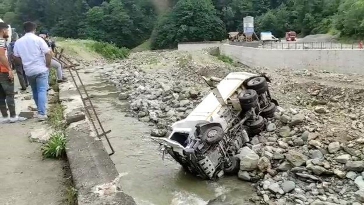 Trabzon'un Of ilçesine bağlı Cumapazarı Mahallesi’nde, inşaat şirketinde çalışan Bülent Kaşıkçı yönetimindeki kamyon, sağanak nedeniyle kayganlaşan yolda kontrolden çıkıp Solaklı Deresi'ne uçtu.