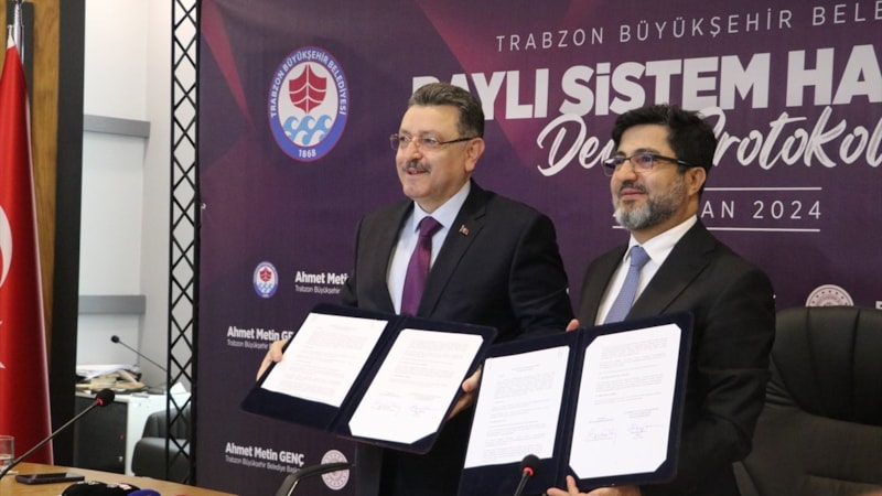 Ulaştırma ve Altyapı Bakanlığı Altyapı Yatırımları Genel Müdürü Yalçın Eyigün, "Trabzon Hafif Raylı Sistem Projesi"nin Raylı Sistem Hattının Devir Protokolü imza töreninde, toplu taşımanın önemine dikkati çekti.