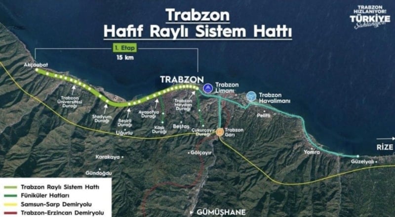 "Projeye genel itibariyle 824 bin kişinin yaşadığı şehrimizde özellikle Akçaabat, Yomra ve Ortahisar ölçeğimizde 500 bin nüfusun yaşadığı sirkülasyonun en yoğun olduğu alana hizmet etme hedefiyle beraber başlanılıyor. Yani Akçaabat ve Yomra arası planlanıyor ancak projemizin başlangıç aşaması şehir hastanemizin de hizmete alınmasıyla beraber daha yoğun bir alan olacak. Etaplamanın en yoğun alanı Akyazı-Meydan olarak yani 8,7 kilometrelik alan itibarıyla inşallah başlayacağız. Hemen akabinde üniversitemize, yani Akyazı-Havalimanı aksı ile 16 kilometrelik kısmını Ortahisar ölçekli olarak ele alacağız. Ardından da Akçaabat bağlantımız ve Yomra bağlantımız şeklinde projemizi inşallah devam ettirmeyi arzu ediyoruz."