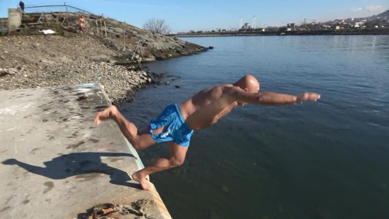 Hava sıcaklığının 15 derece, deniz suyu sıcaklığının ise 8-10 derece dolaylarında olmasına rağmen denize girmekten çekinmeyen 60 yaşındaki Cengiz Aytekin, yaklaşık 30 yıldır her kış denize girdiğini söyledi.