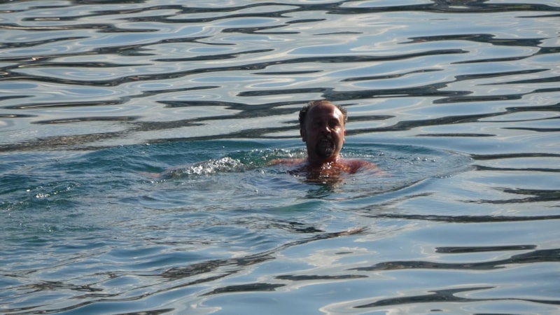 Kışın havalar güneşli olduğu zaman kış mevsiminde bile kendimi bildim bileli 30 yıldır denize girerim. Bugünlerde havalar çok güzel. Dolayısıyla bu güzel havayı kaçırmıyoruz.