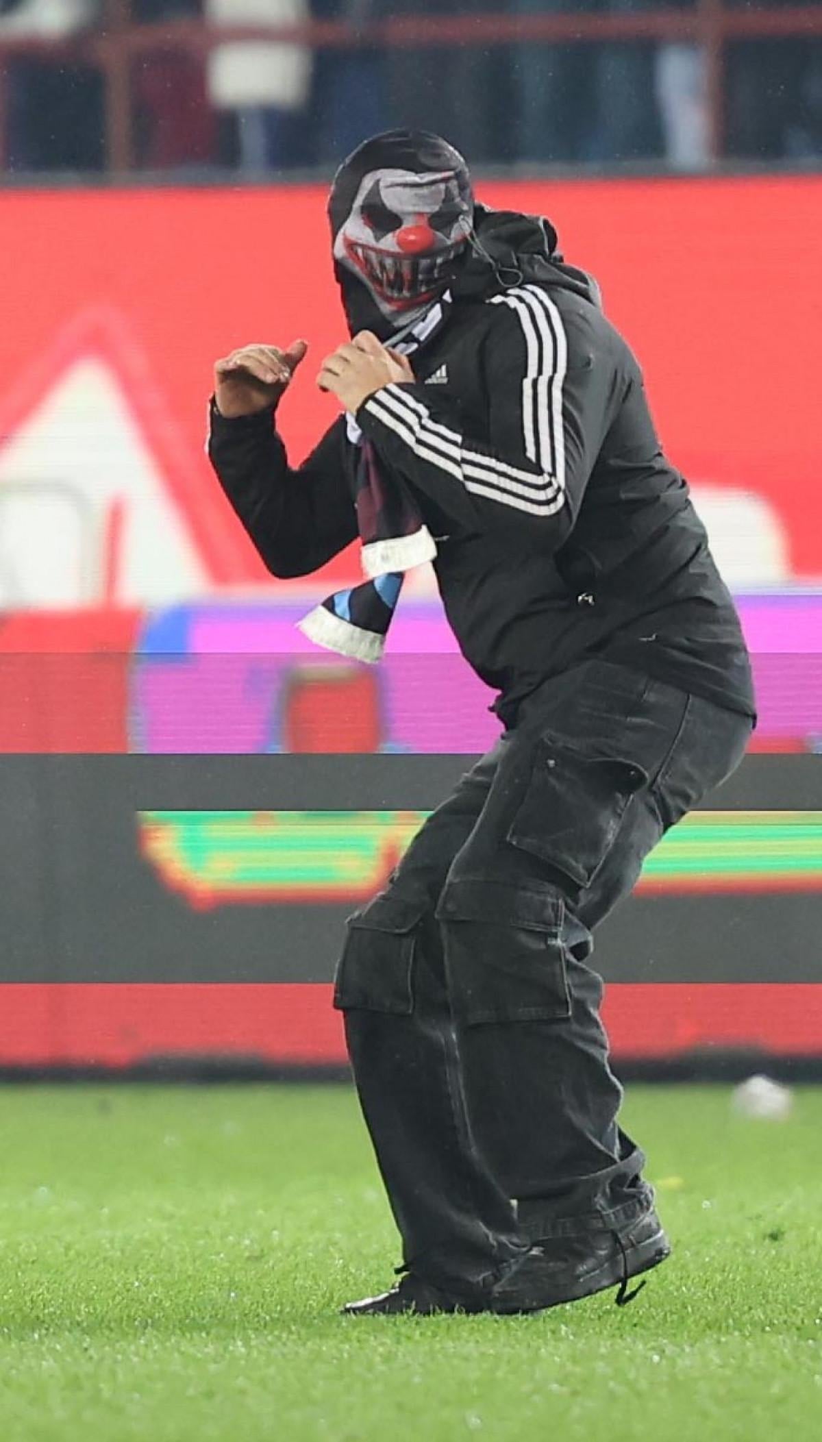 Tribünden atlayıp, yeşil zemine ilk giren maskeli H.Ç.'nin ise Almanya’dan bazı arkadaşlarıyla kente gelerek stadyuma girdiği belirlendi.