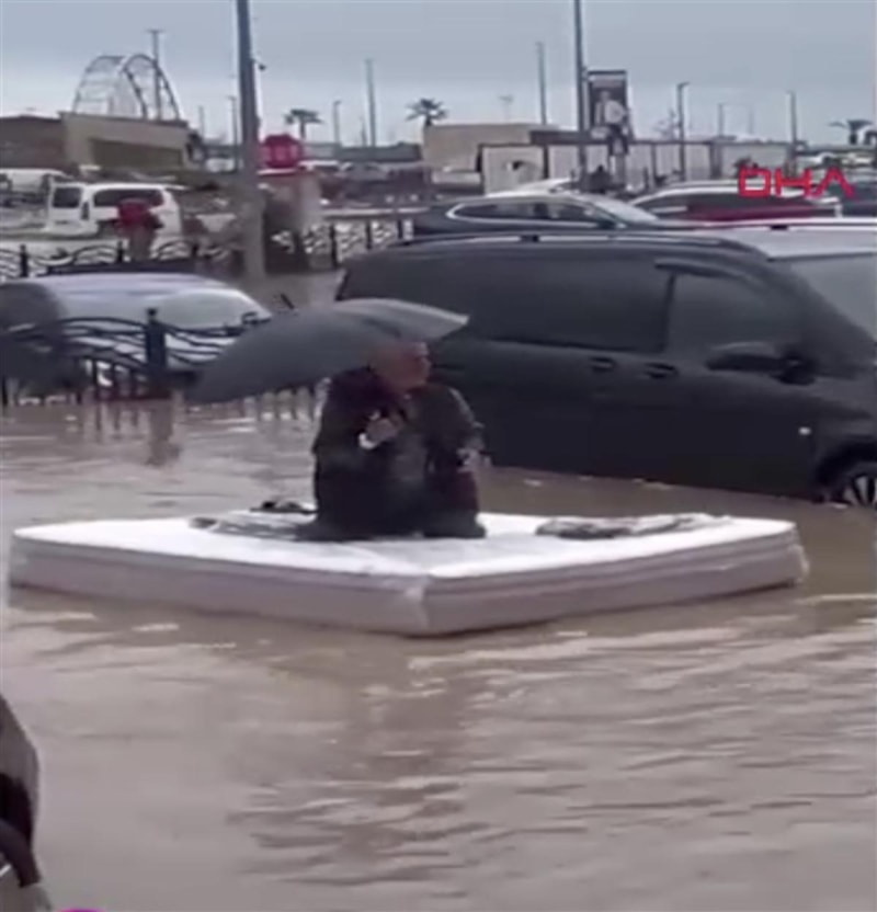 Yatağın üzerinde suyun keyfini çıkaran vatandaşın görüntüleri kısa sürede sosyal medyada hızla yayıldı ve büyük ilgi gördü