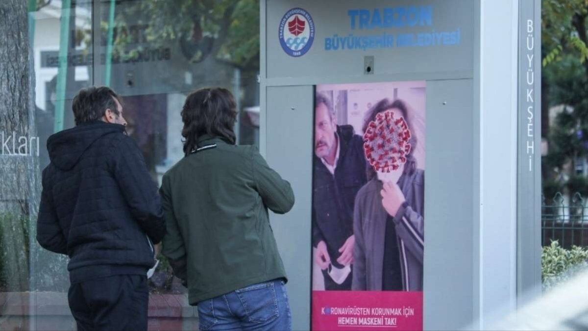 Trabzon Büyükşehir Belediyesi, şehirdeki bazı otobüs duraklarına yerleştirdiği dijital ekranlar, durağa gelen yolcuların kamera ile görüntüsünü yansıtıyor.
