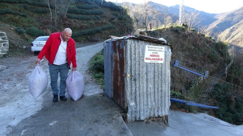 Burada tabeladan da fark ettiğiniz gibi kendi insanlarımızdan sıkıntı yaşadığımız için bu duruma düşmek zorunda kaldık. Burasını 10 yıl önce babam Allah rızası için herkes kullansın diye yaptı. Burada bizde hata var. Bana babam o zaman ‘oğlum bunu yaptır ama kimseyi buna tabi tutma' dedi. 'Herkes kullansın' dedi. Yapılırken buradaki akrabalarım hepsine böyle bir şey yapacağımı söyledim. Herkesin çayı, arazisi var. Belki de bu teleferikten menfaat görmeyecek tek kişi benim. 300 kilogramlık bir çayım var. Biz bunu yaparken kimse ortak olmadı ona ama herkes bunu genel anlamda kullanıyor. Hiç buna da sıkıntı yapmadık. Bunu ondan sonra bunlar ranta çevirdi. Birisi para karşılığında bununla yük çekmeye başladı.