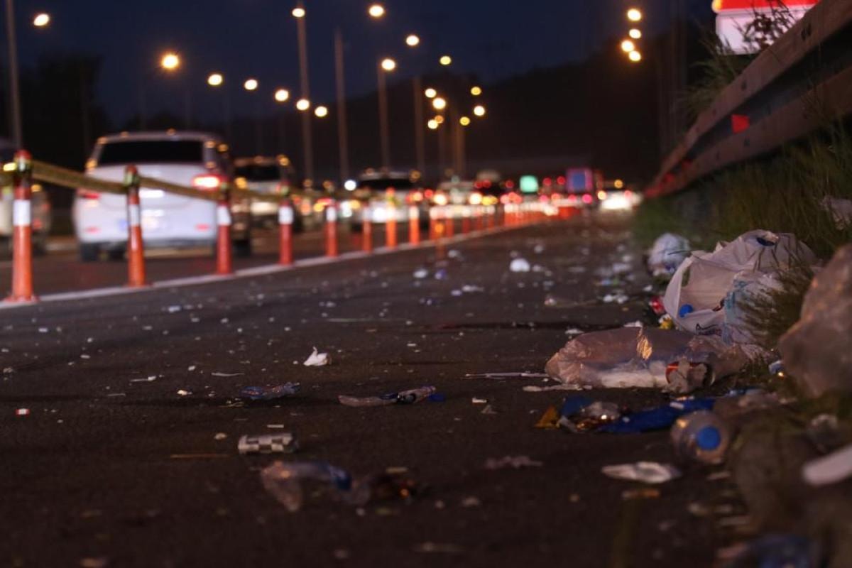 Trafiğin rahatladığı saatlerde ise TEM otoyolunun Ankara istikametinde emniyet şeridinde ortaya çöp dolu manzaralar çıktı.
