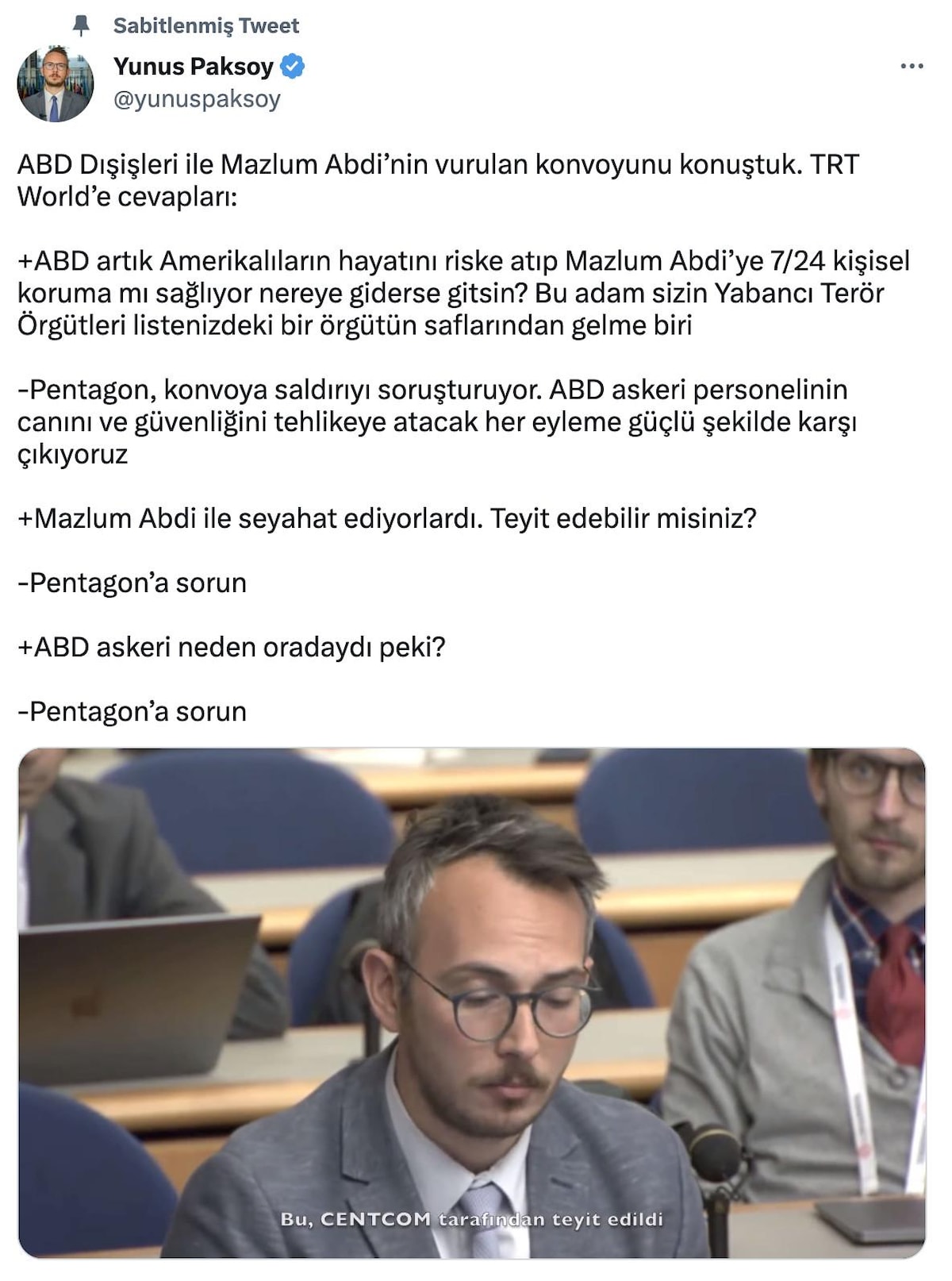 ABD Dışişleri ile Mazlum Abdi’nin vurulan konvoyunu konuştuk.