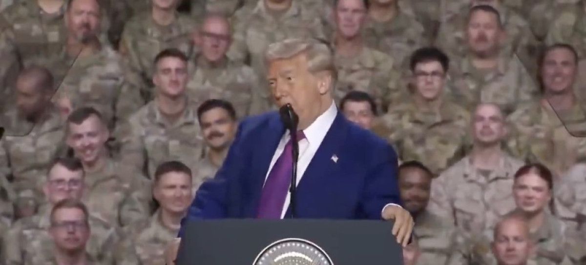 ABD Başkanı Trump, Katar’daki el-Udeyd Amerikan üssünde ABD’li askerle bir araya geldi.