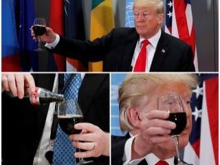 Kola merakıyla bilinen Donald Trump yemekte, liderlerin şarap kadehi kaldırmasına karşılık kolayla cevap verdi.
