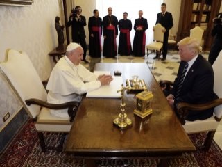 Papa'nın karşısına oturan ABD Başkanı Trump'ın el pençe divan durması objektiflere böyle yansıdı.