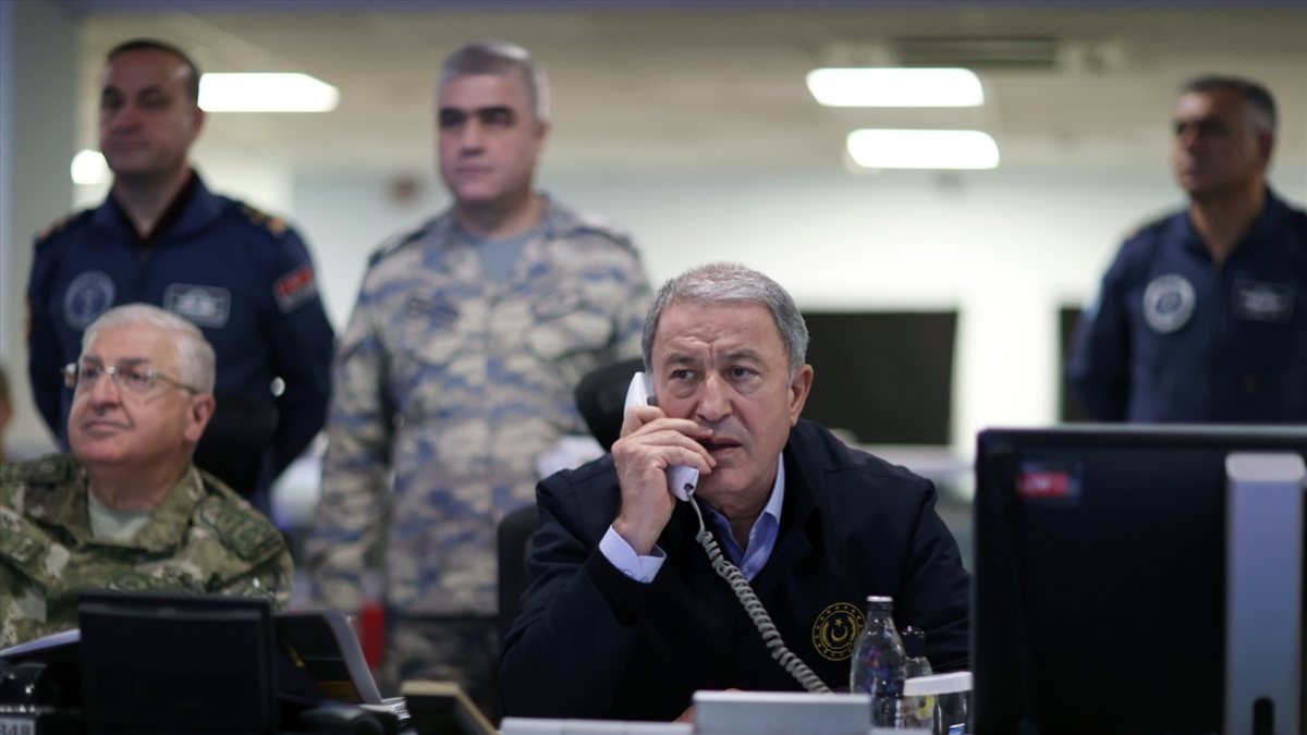 Hava Kuvvetleri Komutanı Orgeneral Atilla Gülan tarafından karşılanan Bakan Akar beraberindeki TSK komuta kademesi operasyonu Hava Kuvvetleri Harekat Merkezinde anbean takip etti.