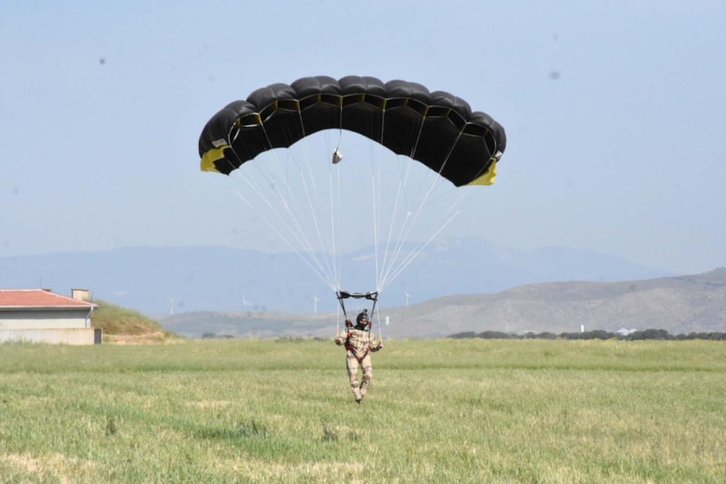 Askeri Serbest Paraşüt Eğitimi'nin 8 haftalık verildiğini dile getiren Binbaşı Ercan, "Akhisar Hava Meydan Komutanlığı'nda bu eğitimi icra etmekteyiz. Bu konuda dünyadaki en iyi eğitimlerden birisini alan kursiyerlerimiz, paraşüt eğitiminin sonrasında gece şartlarında gece görüş gözlüğüyle, yüksek irtifadan oksijen sistemi kullanarak bilinmeyen bir araziye yanlarında götürecekleri, görev için kullandıkları silah, mühimmat teçhizatları da alarak nokta hedefine sızma harekatı icra edecek seviyeye gelirler.